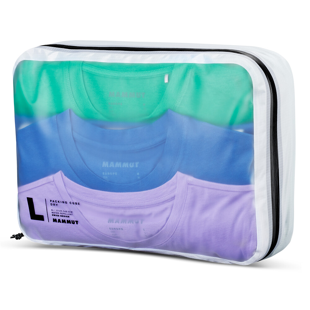 Praktický organizér Packing Cube Dry od spoločnosti Mammut vám pomôže usporiadať veci vo väčšej batožine. Je vyrobený z nepremokavého materiálu vrátane zipsu, takže sa o svoje veci nemusíte báť. Polopriehľadné okienka na prednej a zadnej strane vám pomôžu ľahko vidieť veci uložené vo vnútri. Veľkosť L je vhodná na oblečenie(tričká, košele, spodnú bielizeň), obuv alebo potraviny.