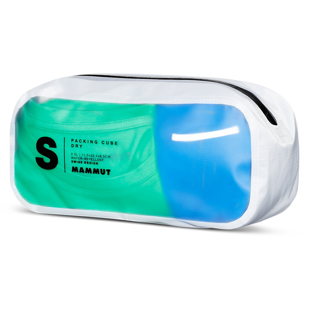 Praktický organizér Packing Cube Dry od spoločnosti Mammut vám pomôže usporiadať veci vo väčšej batožine. Je vyrobený z nepremokavého materiálu vrátane zipsu, takže sa o svoje veci nemusíte báť. Polopriehľadné okienka na prednej a zadnej strane vám pomôžu ľahko vidieť veci uložené vo vnútri. Do veľkosti S sa zmestí napríklad čelovka, náhradné batérie, príbor, vreckový nôž a ďalšie menšie vybavenie.