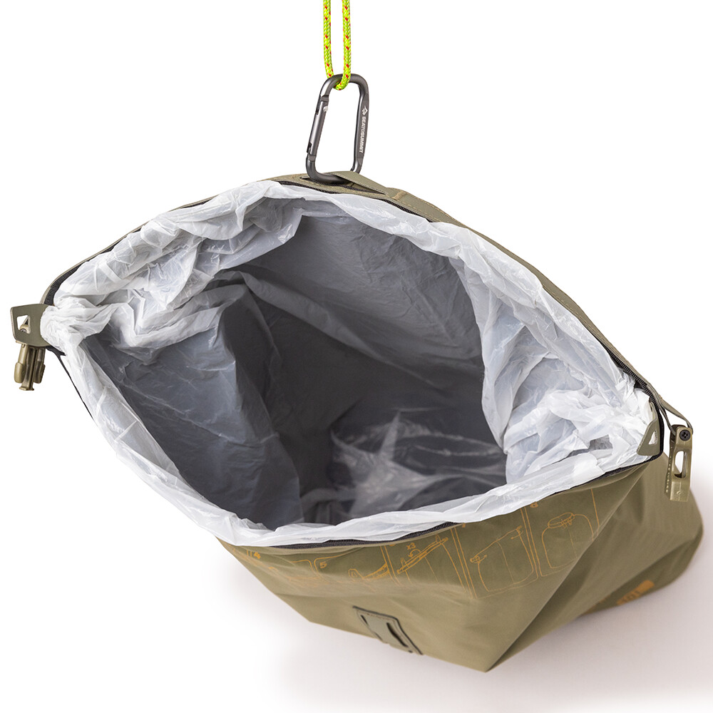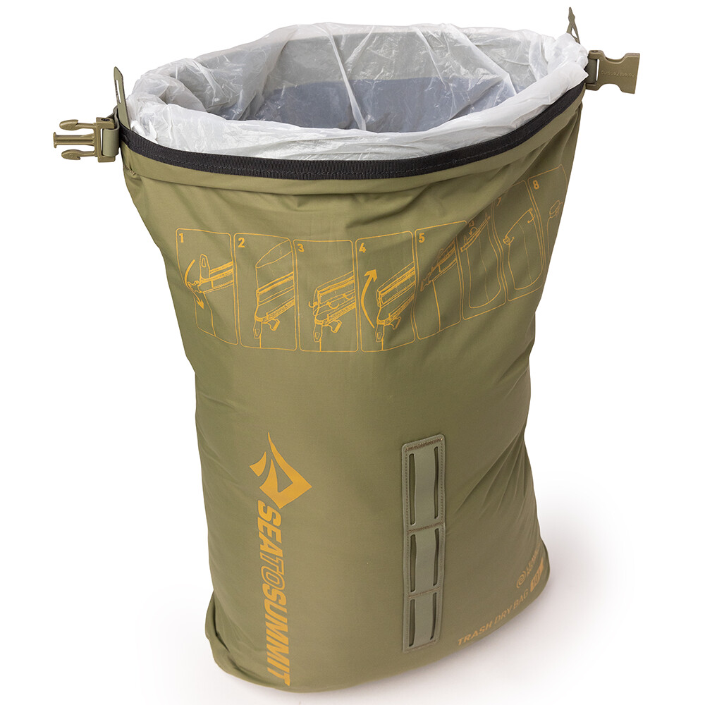 Vodotesné vrece na odpadky od spoločnosti Sea to Summit má rolovací uzáver a je vyrobené z odolného materiálu. Pomocou pútok na bokoch ho možno ľahko pripevniť k batohu alebo lodi a možno ho použiť aj na dlhšie cesty autom. Dovnútra vreca môžete umiestniť klasické vrecko na odpadky. Váš odpad zostane bezpečne vnútri a nič neznečistí.
