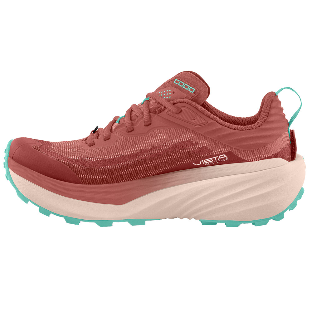 Vista je maximálne tlmená dámska trailová obuv od americkej značky Topo Athletic. Beh alebo dlhé pochody v teréne, turistika, cestovanie, každodenná chôdza, to všetko zvládne. Skrátka ideálna voľba pre tých, ktorí hľadajú pohodlnú, v špičke priestrannú a štýlovú topánku na každý deň.