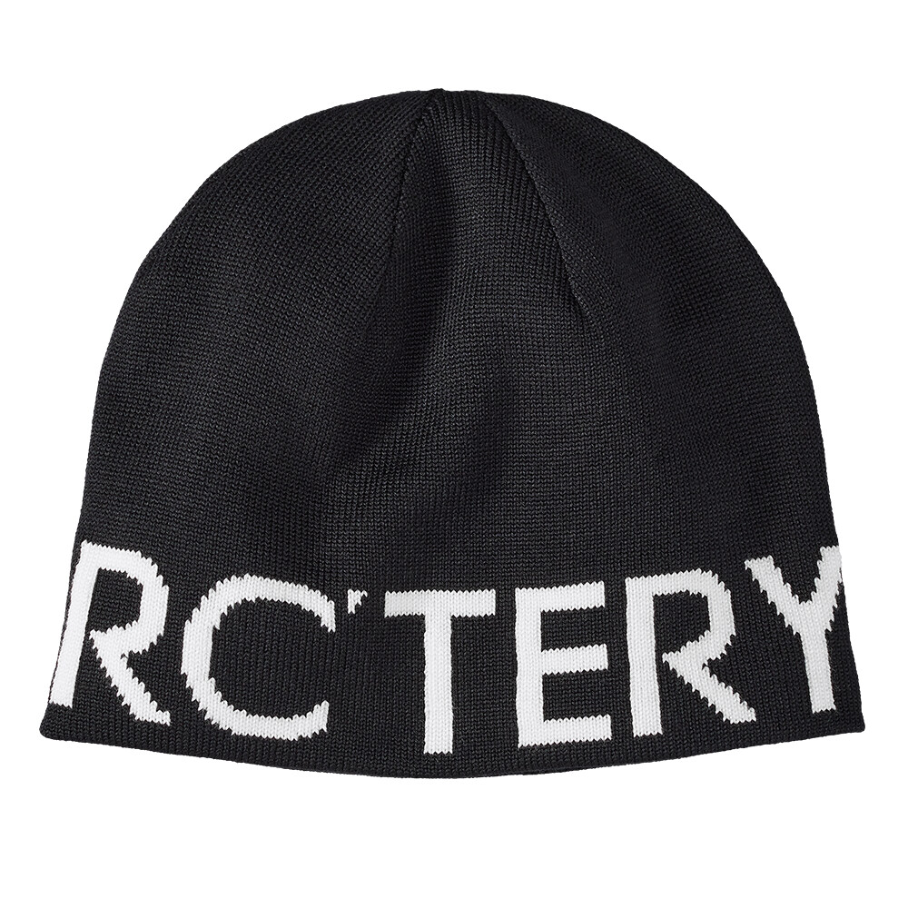 Obojstranná čiapka Word Head Toque od kanadskej značky s veľkým nápisom Arc'teryx z jednej strany a jednofarebným designom na strane druhej.