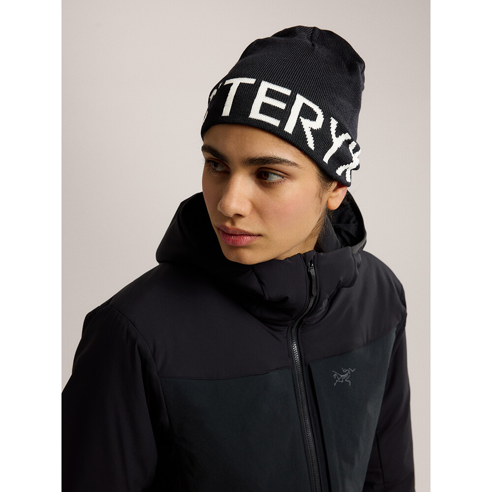 Obojstranná čiapka Word Head Toque od kanadskej značky s veľkým nápisom Arc'teryx z jednej strany a jednofarebným designom na strane druhej.